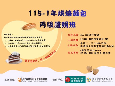 【上課地點】:高雄市左營區富民路13巷16號(善慧恩培力中心)